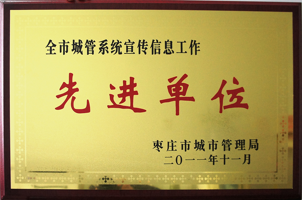 被棗莊市城市管理局評為“全市城管系統宣傳信息工作先進單位”