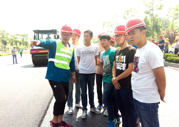 我公司作為棗莊學院教學實踐基地,承擔了棗莊學院相關專業教學實踐活動相關職能。為在校生提供實地教學觀摩和講解,是我公司的一項重要社會職能。本次赴我公司學習觀摩的學生,均為棗莊學院城市與建筑學院2013級土木工程專業在校生。師生一行先后參觀了遠建路橋分公司路面材料生產現場和路橋一分公司匯泉路項目瀝青攤鋪現場。